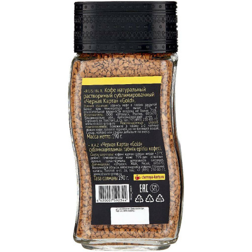 Кофе растворимый Черная карта Gold, стеклянная банка 190 г