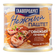 Паштет печёночный нежный с говяжьей печенью 240гр Главпродукт