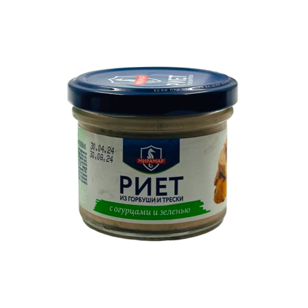 Риет из горбуши и трески с огурцами и зеленью 100гр Мирамар