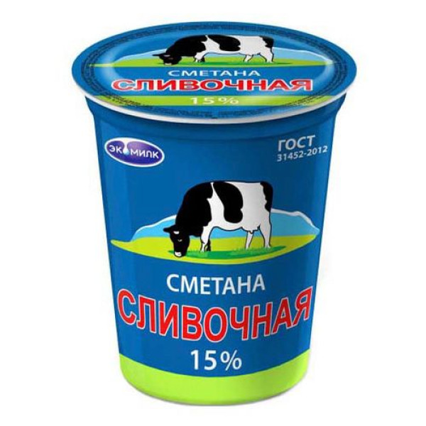 Сметана 315 г 15% Экомилк стакан