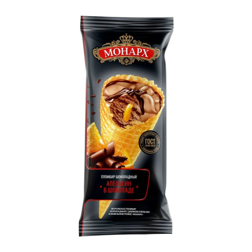 Мороженое Монарх пломбир 12% Апельсин в шоколаде рожок 120г