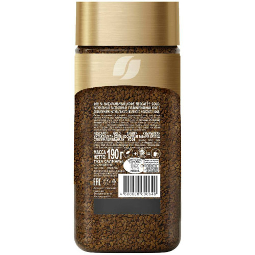Кофе растворимый Nescafe Gold сублимированный, стеклянная банка 190 г