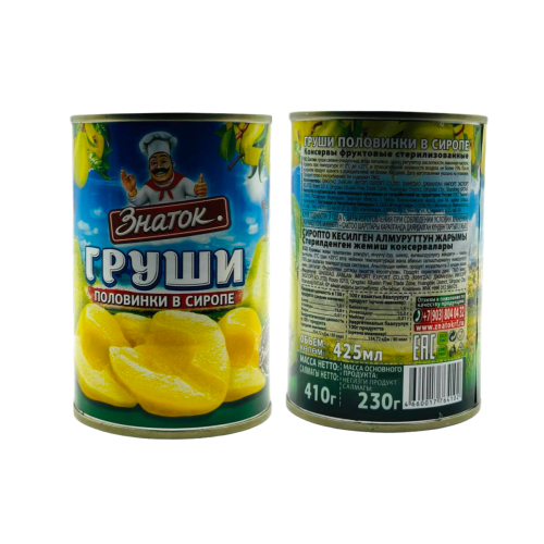 Груши половинки в сиропе ж/б 410гр Знаток