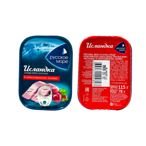 Сельдь Исландка филе-кусочки в красном вине 115гр Русское море